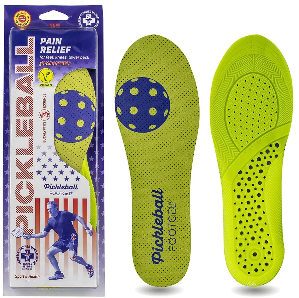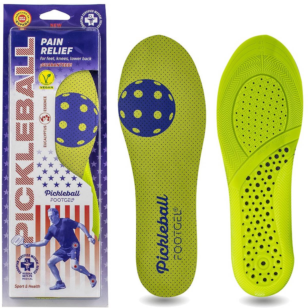 Footgel Pickleball-inlegzolen Geel EU 39-42 Man