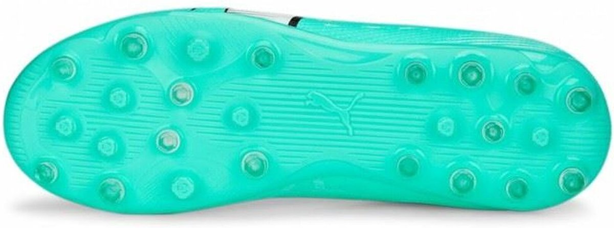 Puma zaalvoetbalschoenen in zwart-wit-zilver design met synthetisch bovenwerk en niet-markerende rubberen zool bieden stabiliteit en zeker contact met de bal