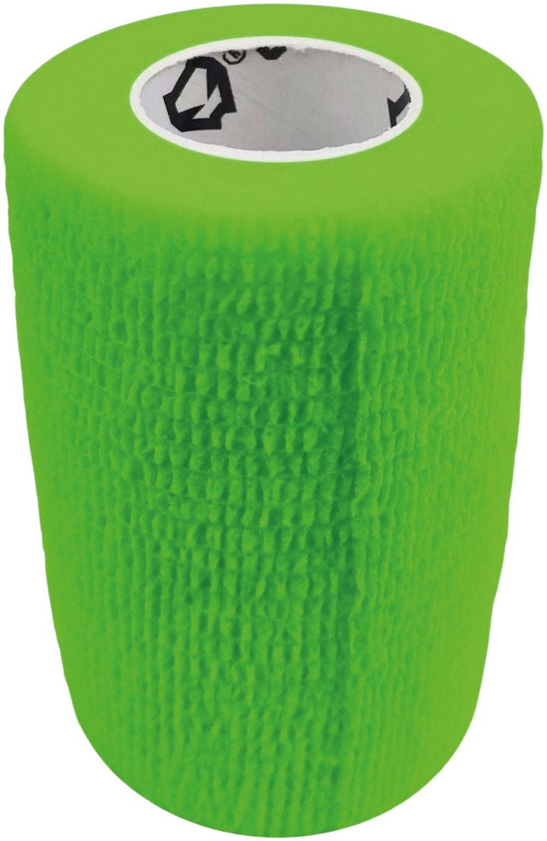 Specificaties: Gebruik: houdt je sok en scheenbeschermer op z’n plek Inhoud: één rol Afmeting: 7,5cm x 4,5m Kleur: groen Materiaal: