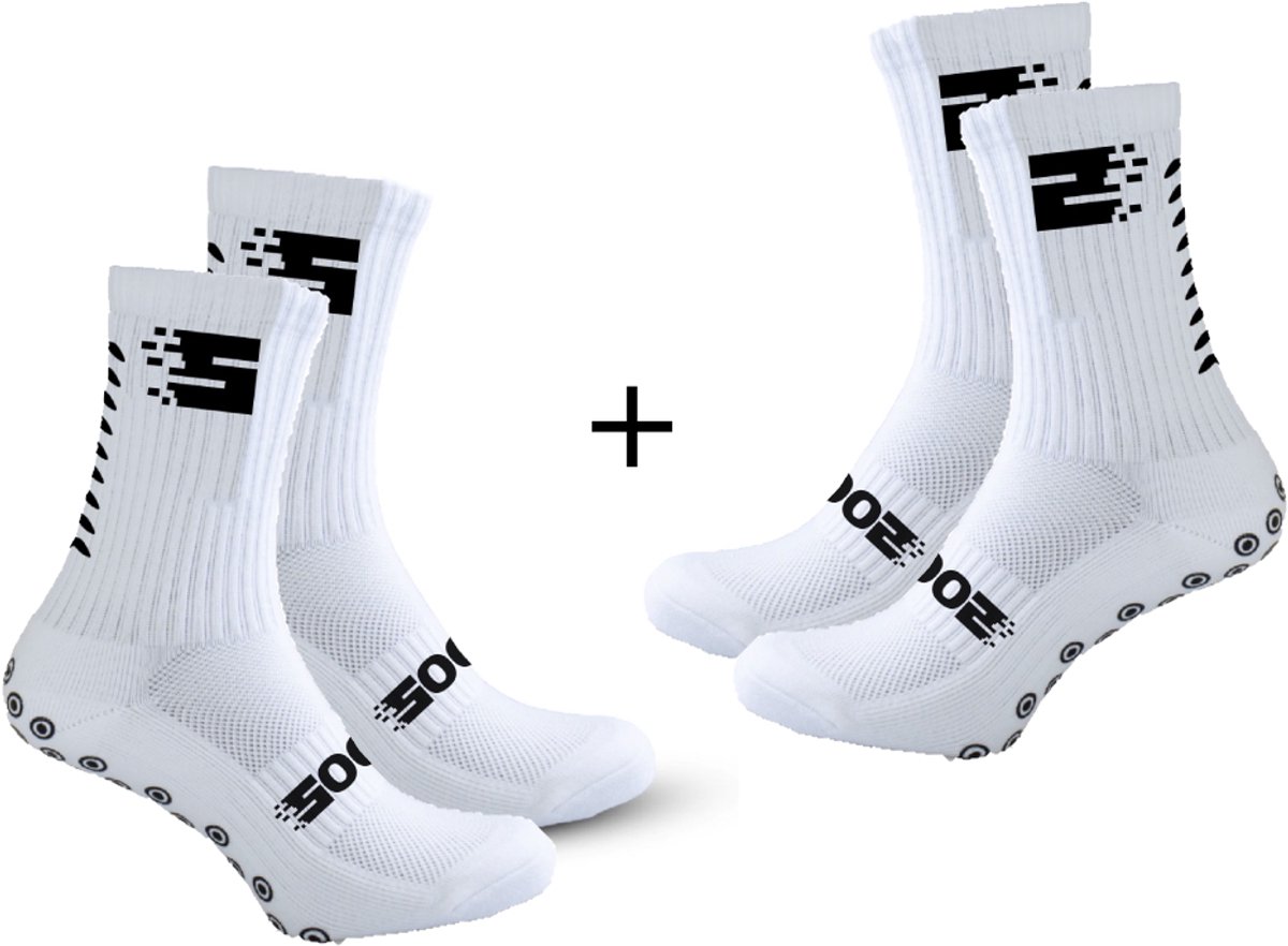 Verbeter je spel op het veld met onze Sockz Gripsokken. Deze grip sokken in wit voorkomen blaren en zorgen voor optimale grip tijdens het voetballen. One Size fits all.