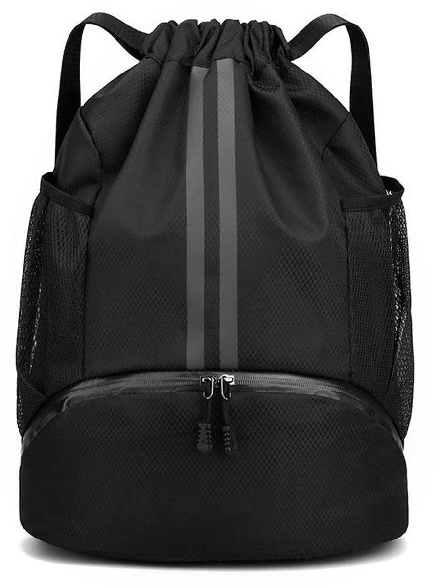 Unyqoos® Ruime en Waterdichte Sporttas met Verstelbaar Trekkoord voor Alle Leeftijden in Zwart