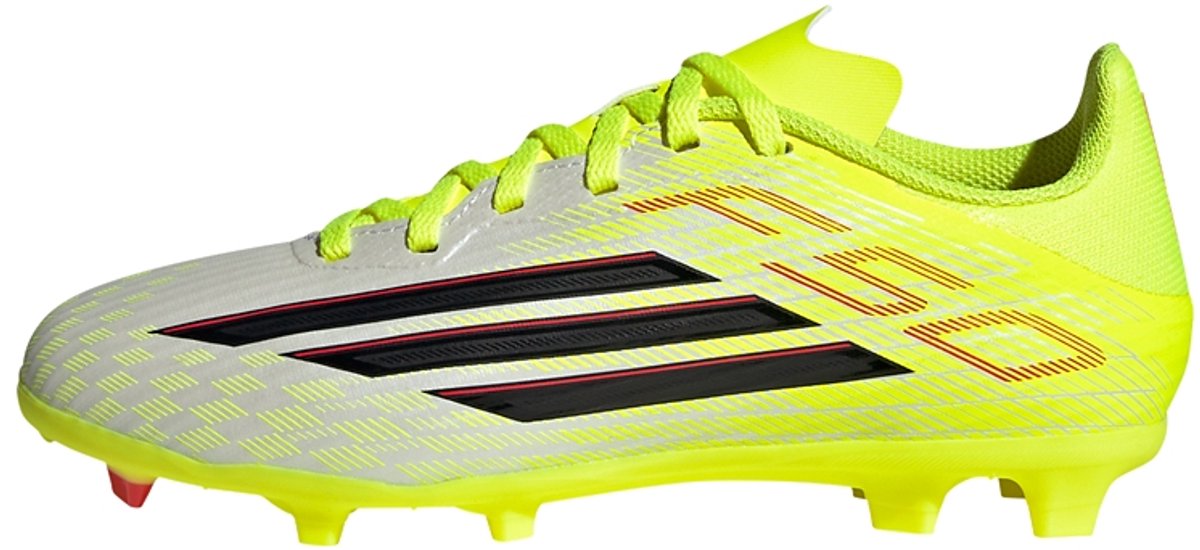 De F50 League Firm-Ground / Multi-Ground voetbalschoenen zijn gemaakt voor jonge spelers die klaar zijn om indruk te maken op het veld. Met een opgefriste graphic op het bovenwerk zijn deze schoenen ontwikkeld met zowel stijl als snelheid in gedachten. Het Fiberskin-bovenwerk is ontworpen om balcontrole te ondersteunen, terwijl de zwevende tong comfort en ademend vermogen levert. De Sprintplate 360-technologie biedt een loopzool met een combinatie van platte en semi-conische noppen, die snelheid en wendbaarheid ondersteunen. Deze kicksen zijn ontworpen om het tempo van het spel op verschillende ondergronden bij te houden. adidas blijft de grenzen van prestaties en stijl verleggen en helpt jonge spelers om met zelfvertrouwen en flair op het veld te staan. Normale pasvorm Veters Bovenwerk van synthetisch materiaal en textiel Inlegzool van textiel Synthetische loopzool SPRINTPLATE 360-technologie