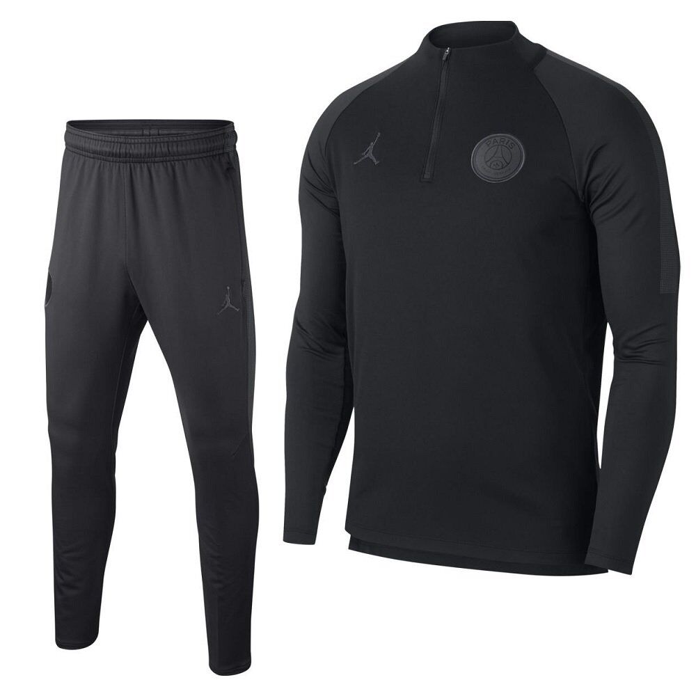 Vanaf nu verkrijgbaar, het Nike Paris Saint Germain Dry Squad Drill Trainingspak 2018-2019 Champions League Kids Zwart. Deze trainingstrui is een unieke samenwerking tussen Nike, PSG en Air Jordan en heeft het Jordan logo op de trui staan. De Nike trainingstrui is zwart met zwarte accenten en heeft ter hoogte van de linkerborst prijkt het Paris Saint Germain. De Paris Saint Germain trainingstrui is voorzien van een 1/4 rits, zo kun je de temperatuur goed reguleren tijdens trainingen. De Nike Paris Saint Germain Drill Top heeft een goede pasvorm en is gemaakt met Nike Dry materiaal. Dit materiaal voert transpiratie af naar de buitenste laag van de trui, zo blijft de trainingstrui droog en comfortabel aanvoelen bij trainingen. De Paris Saint Germain midlayer is voorzien van een mesh voering, de mesh gaatjes zorgen voor extra luchtigheid en comfort tijdens het sporten. De pasvorm van deze broek zit perfect om de benen heen en voelt daarom geweldig aan. Door middel van de tailleband kun je de broek naar wens strakker trekken.De stof van deze broek is erg rekbaar en is daardoor dus perfect om in te bewegen. De materialen van deze broek bestaan dan ook uit polyester en spandex. De body/panden bestaan uit 100% Dri-FIT polyester. De panden op de onderbenen bestaan uit 91% Dri-FIT polyester en 9% spandex.